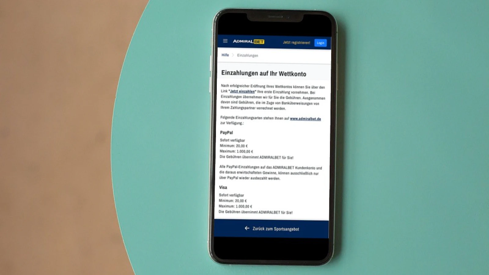 Dabei kannst du dir den Wettanbieter Bonus mit allen Admiralbet Zahlungsmethoden sichern.