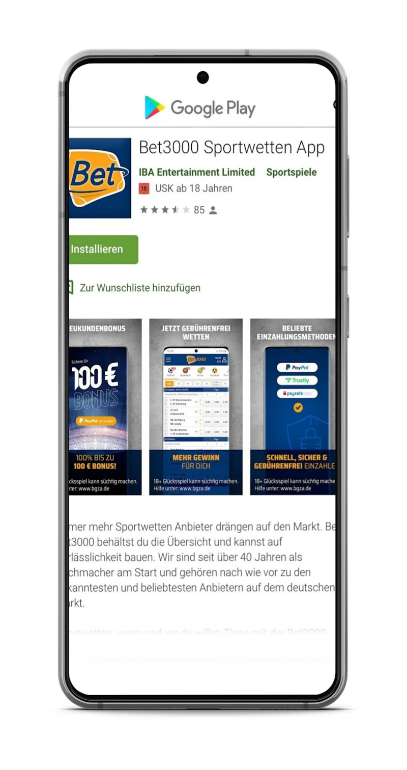 Lange Zeit waren Sportwetten Apps aus dem Google Play Store verbannt worden. Am 1. März 2021 hob Google diese Richtlinie auf. Somit findest du auch die Bet3000 App wieder im Google Play Store.