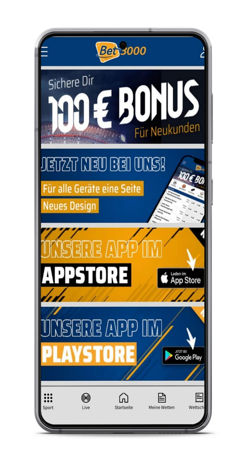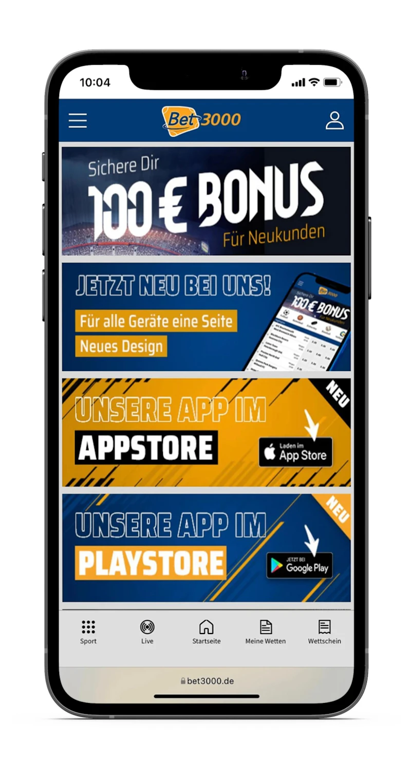 Wie die meisten der besten Wettanbieter hat auch Bet3000 seit längerem eine eigene Wett-App. Diese ist sowohl als IOS- als auch als Android-Version verfügbar. Der Download der Bet3000 App fürs iPhone geht wie gewohnt über den Apple Store.
