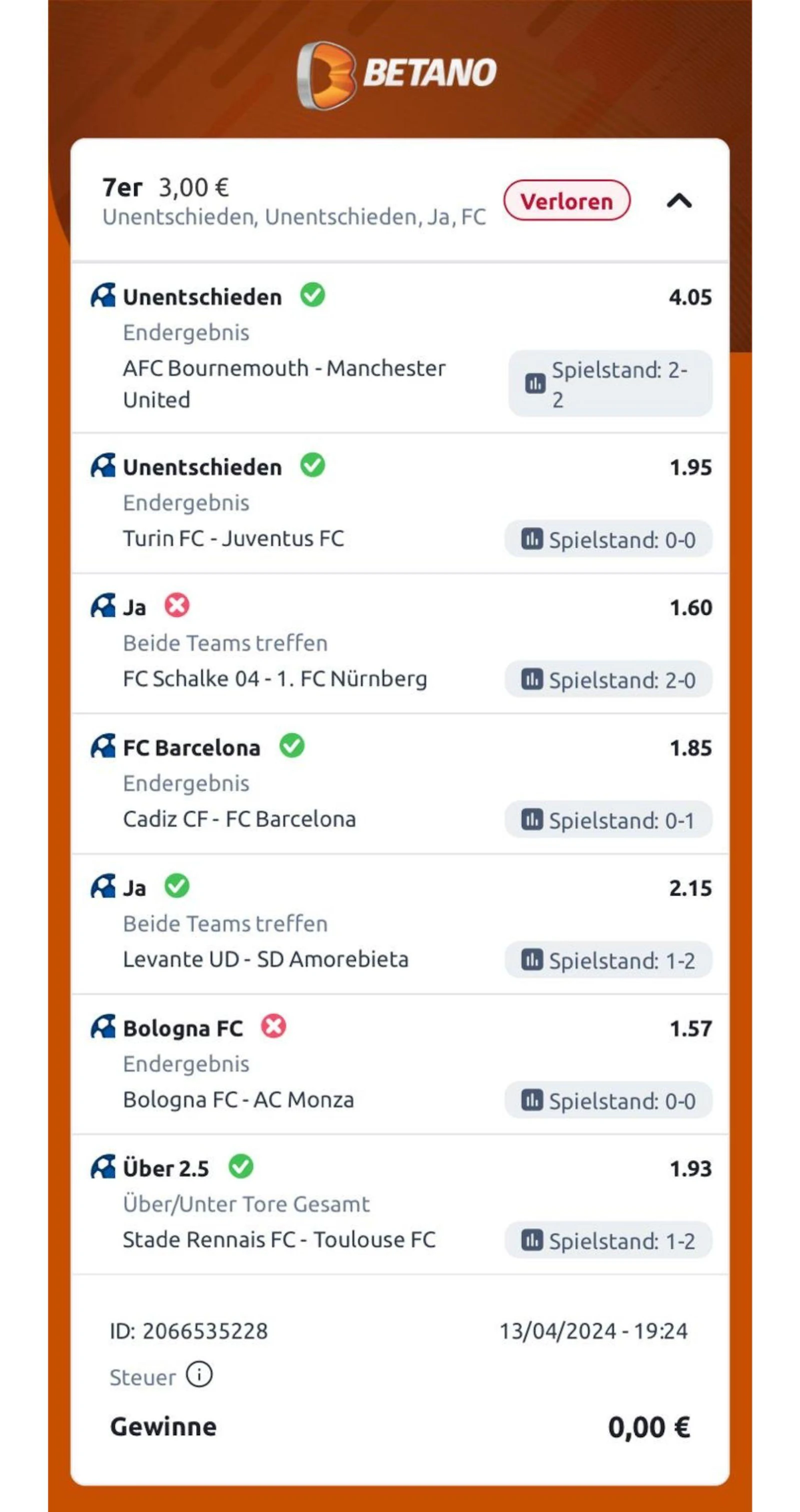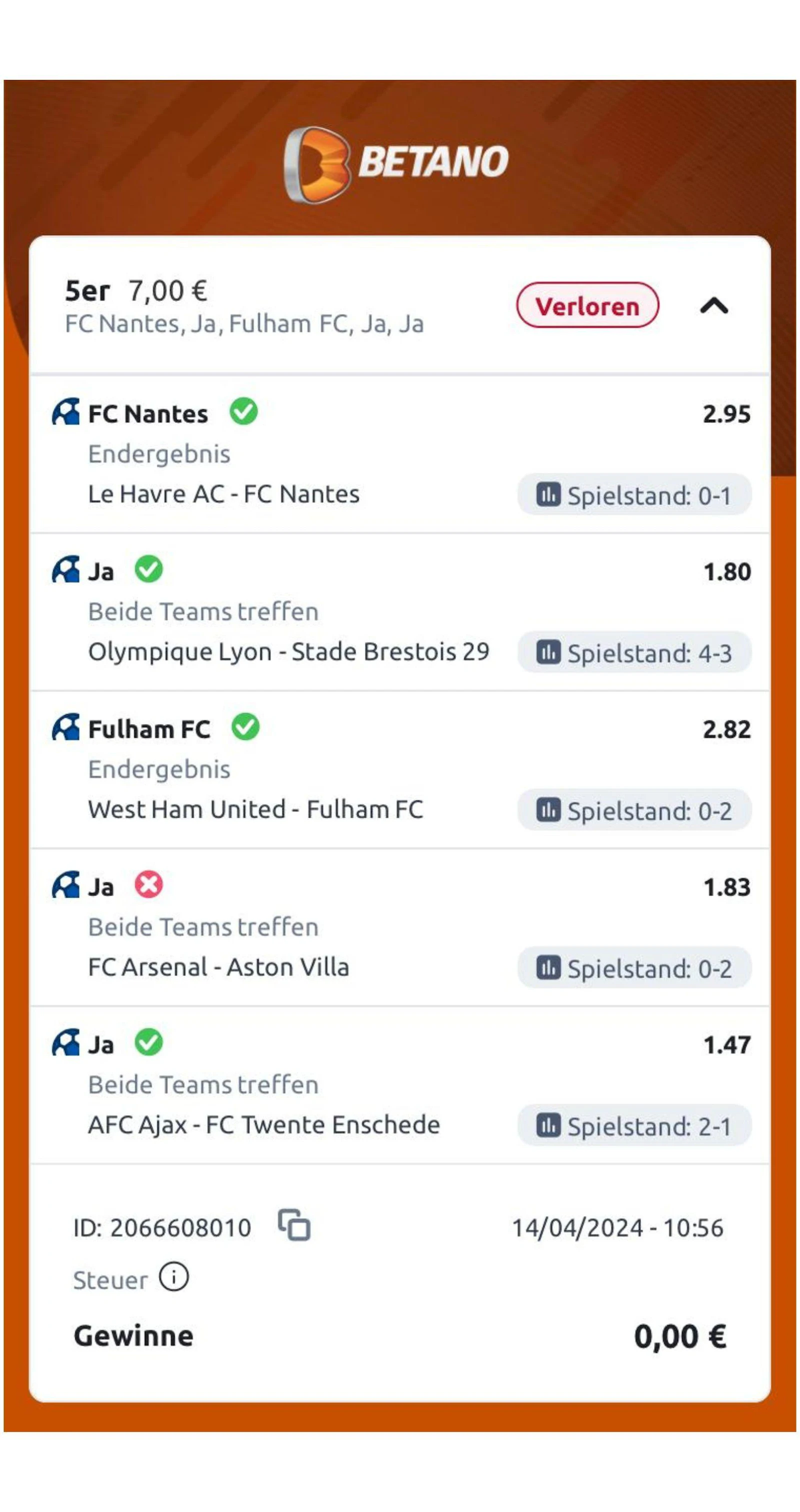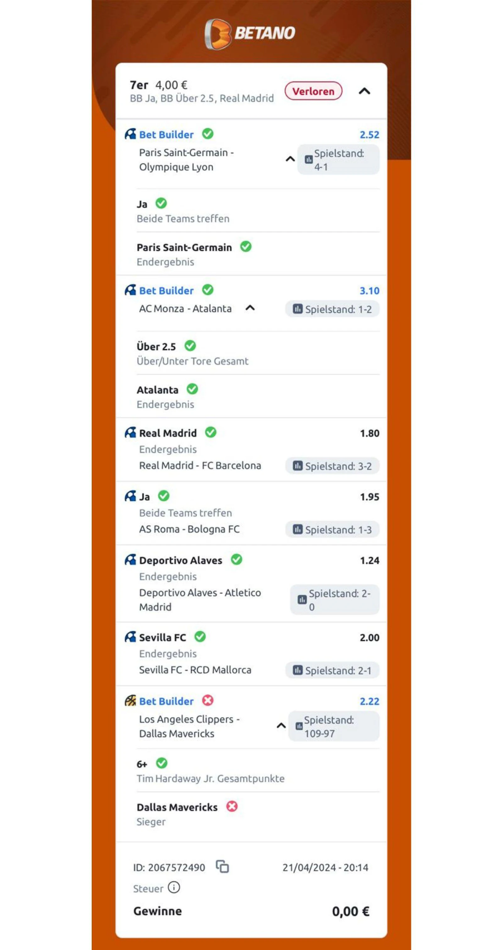 Während meines Tests ging natürlich nicht jeder Wettschein auf. Zwei meiner letzten fünf Wettscheine gingen bisher verloren.